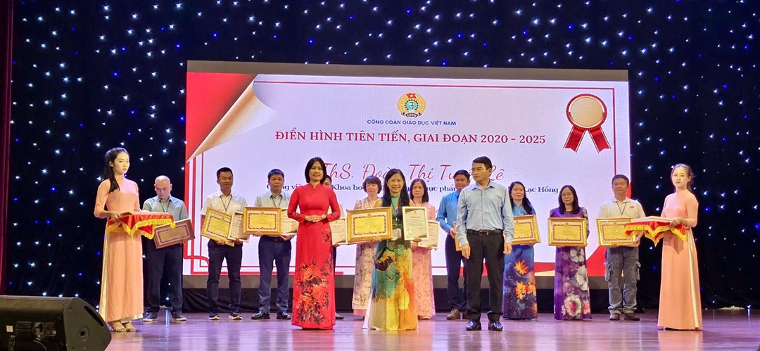 Cô Đoàn Thị Tuyết Lê nhận Bằng khen của Công đoàn Giáo dục Việt Nam vì những đóng góp cho nghiên cứu khoa học và giảng dạy