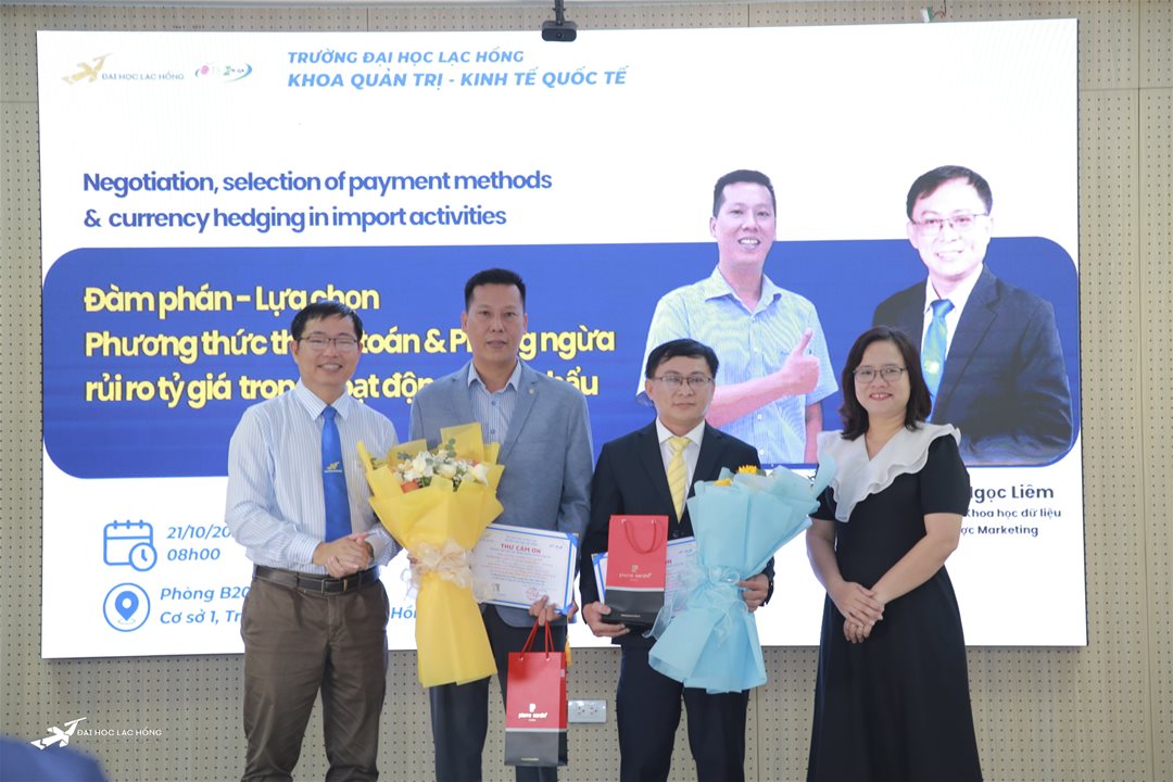 Nhằm nâng cao kỹ năng thực hành và tăng cường kết nối giữa sinh viên với thực tiễn hoạt động của doanh nghiệp, Khoa Quản trị - Kinh tế Quốc tế đã tổ chức thành công chương trình “Đàm phán, lựa chọn Phương thức thanh toán và phòng ngừa rủi ro tỷ giá trong hoạt động nhập khẩu". Chương trình được thiết kế dành riêng cho sinh viên ngành Kinh doanh quốc tế, diễn ra vào sáng 21/10/2025 và thu hút sự tham gia của đông đảo giảng viên, chuyên gia và sinh viên.