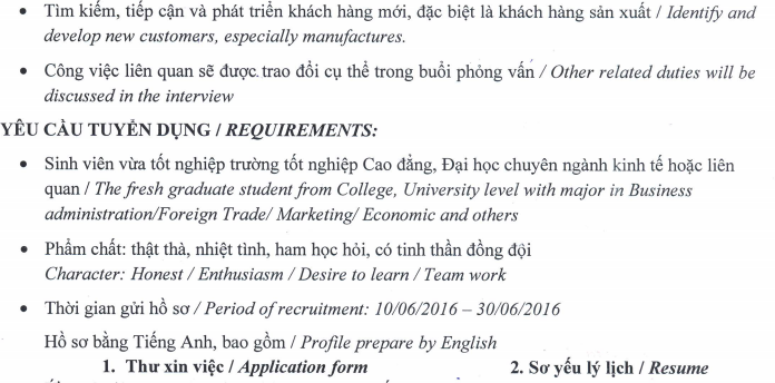 3.  Vị trí tuyển dụng: Nhân viên kinh doanh