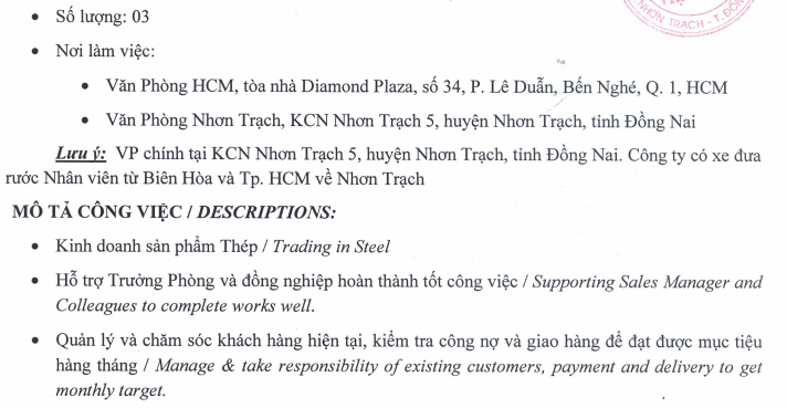 Công ty Posco cần tuyển nhân viên kinh doanh