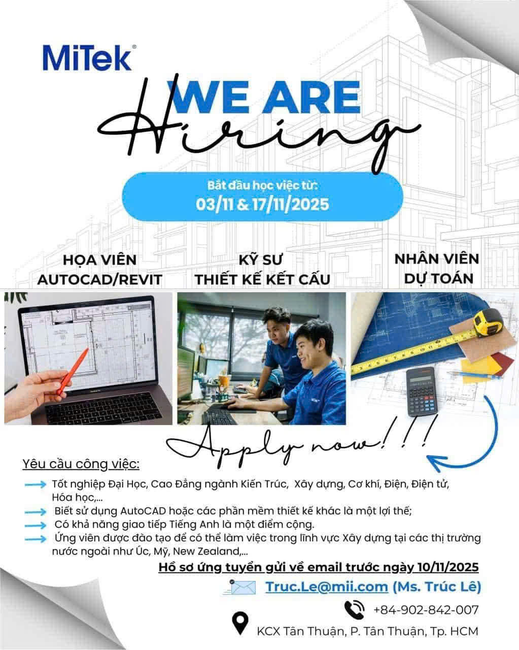 Thông báo tuyển dụng lần thứ 37, năm học 2025 - 2026. Công ty Mitek Việt Nam,