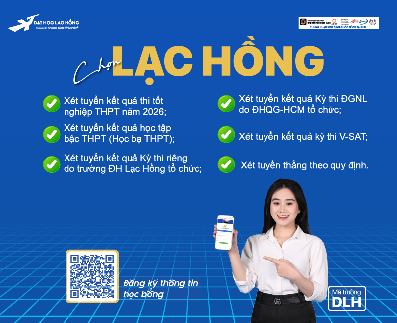 • Năm 2026, Trường Đại học Lạc Hồng xét tuyển đại học chính quy năm 2026 theo 05 phương thức