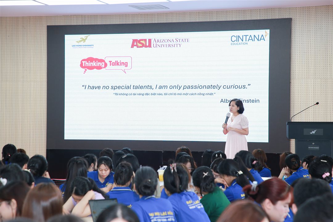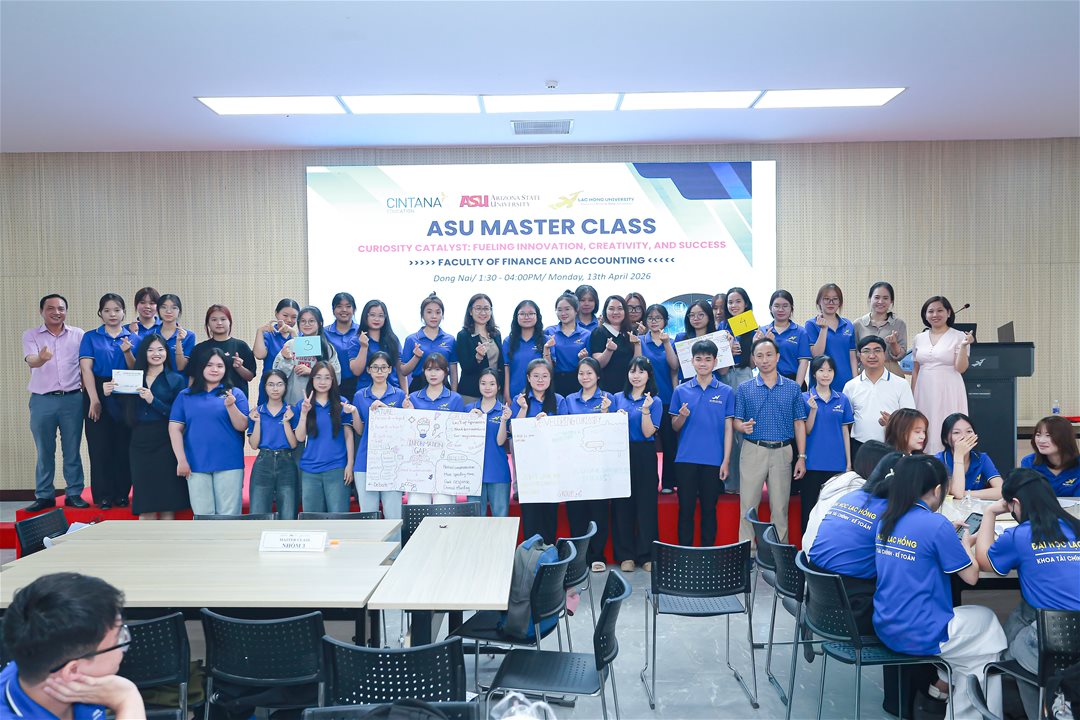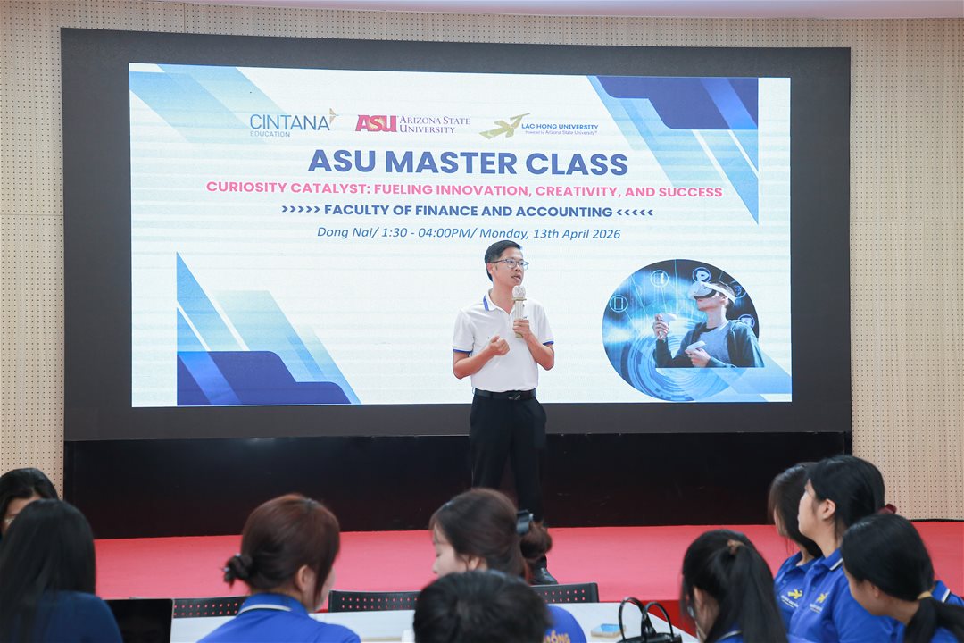 To provide students with opportunities to engage in a modern learning environment, stay updated with international educational trends, and enhance their global competencies, on the afternoon of April 13, 2026, at Hall A301, Lac Hong University, the Faculty of Finance and Accounting successfully organized an international Master Class under the theme “Curiosity – Catalyst: Fueling Innovation, Creativity, and Success,” delivered by Ms. Tran Thi Phuong Thao.