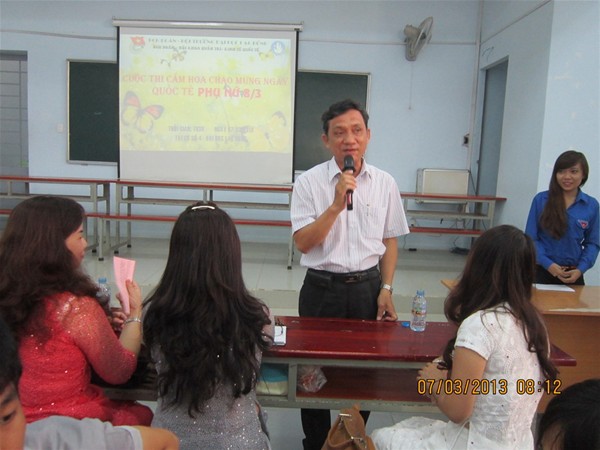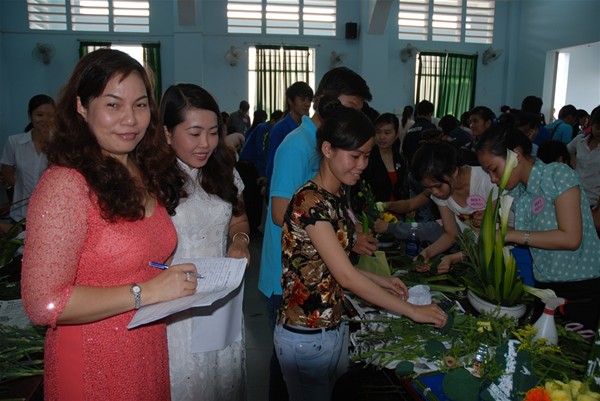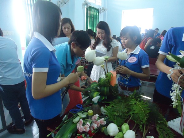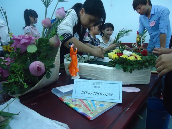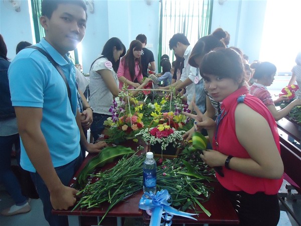 As usual, on 7 March 2013, at Room F501, campus 4 of Lac Hong University, a flower arranging contest was held by the Faculty of Business Administration and Foreign Trade’s Youth Union to celebrate the International Women’s Day. The competition attracted the participation of 33 teams and great interest from teachers. Each included 3 members including one boy and two girl students. This is a great occasion for schoolboys to show their affection to schoolgirls.