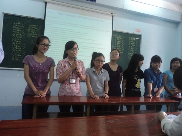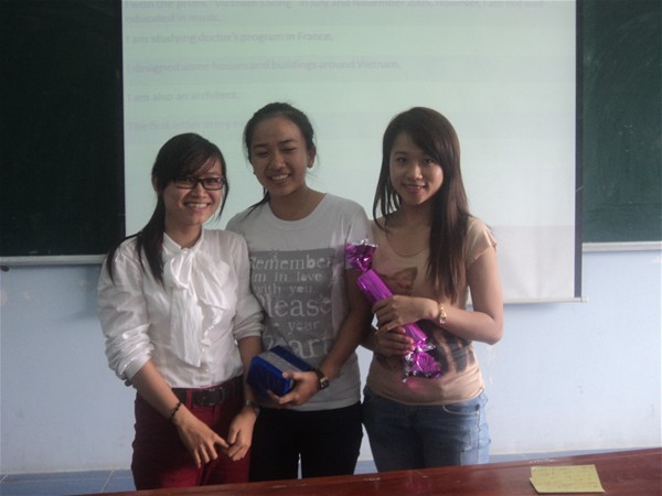 Following the success of previous English club meetings, the faculty members of English Language greatly focused and made every effort to bring the club full of fun and various activities, attracting a lot of students from different faculties of the university. Coming to this English club, besides useful knowledge, the participants had opportunities to get material and spiritual presents made by the teachers. The success of this event will be a great motivation helping the collective of English Language Faculty to continue their effort to create more new playgrounds, meeting  learning and recreative needs of students after stressful school time.