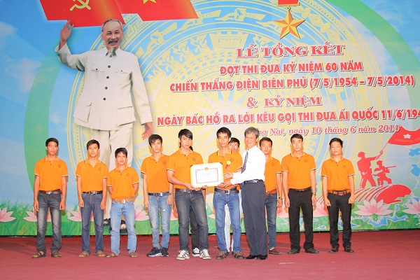 In the morning of June 10, Lac Hong Robocon teams were unexpectedly honored at a solemn ceremony to close emulation movements marking 60th anniversary of Dien Bien Phu victory (May 7, 1954 - 2014) and the 66th anniversary of President Ho Chi Minh’s Calling for Patriotic Emulation (June 11, 1948 –  20134) .The event took place at Dong Nai Convention and Events Center.
