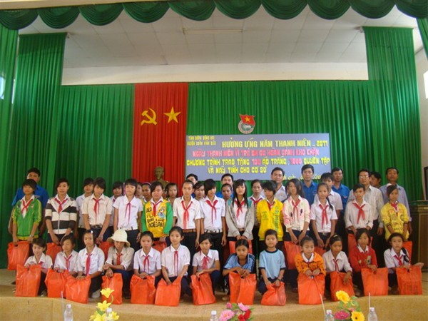 In response to the Year of Youth - 2011 and the campaign Youth Day for children in difficult circumstances, the Standing Committee of Lac Hong University’s Union in cooperation with the Ho Chi Minh Communist Youth Union of Dong Nai held a program to present gifts to poor but studious children and difficult areas in Phu Ly Commune, Vinh Cuu District , Dong Nai Province.